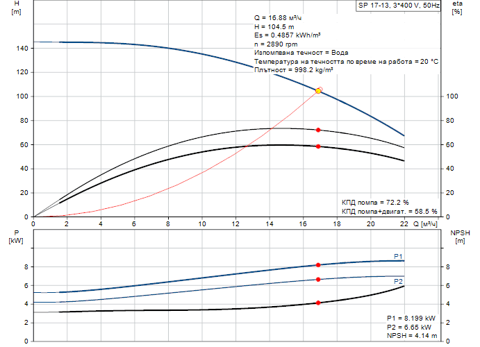 - Номинален напор: 106 m