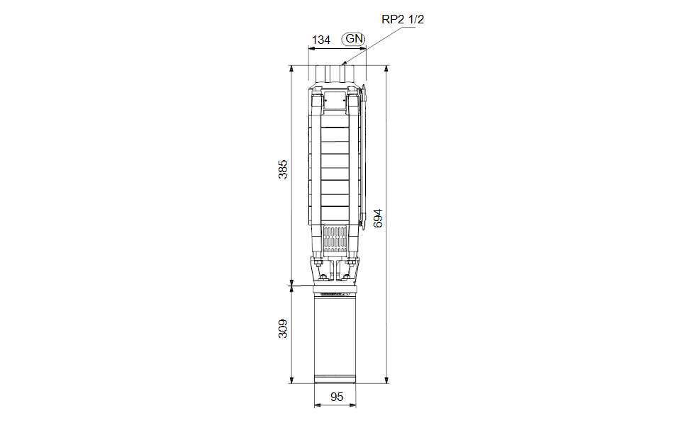 Потопяема сондажна помпа, подходяща за изпомпване на чиста вода. Може да бъде инсталирана вертикално или хоризонтално. Всички стоманени компоненти са изработени от неръждаема стомана EN 1.4301 (AISI 304), с което се осигурява висока устойчивост на корозия. Тази помпа притежава одобрение за питейна вода.