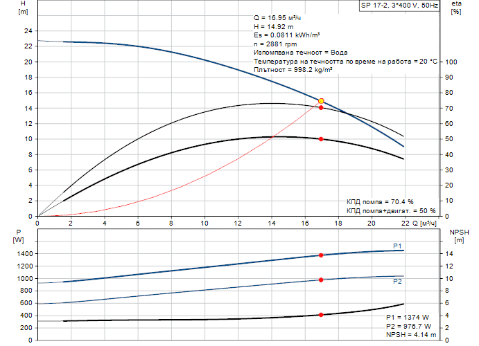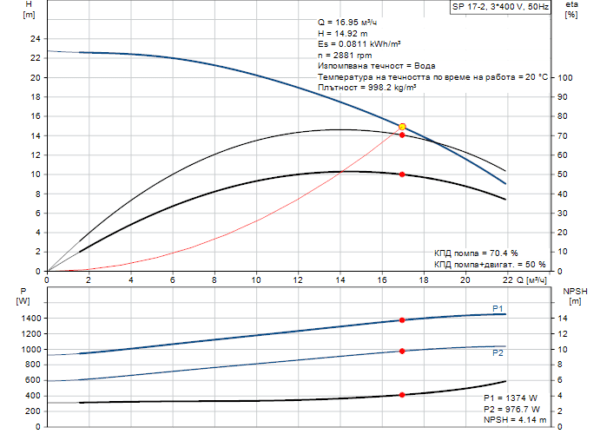 - Скорост на помпата на която са базирани данните: 2900 rpm