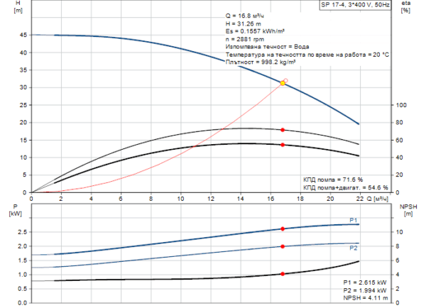 - Скорост на помпата на която са базирани данните: 2900 rpm