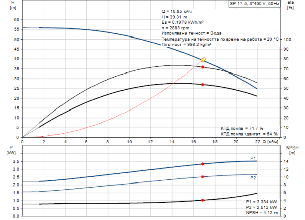 - Скорост на помпата на която са базирани данните: 2900 rpm