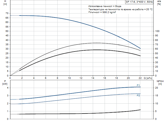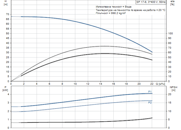 - Скорост на помпата на която са базирани данните: 2900 rpm