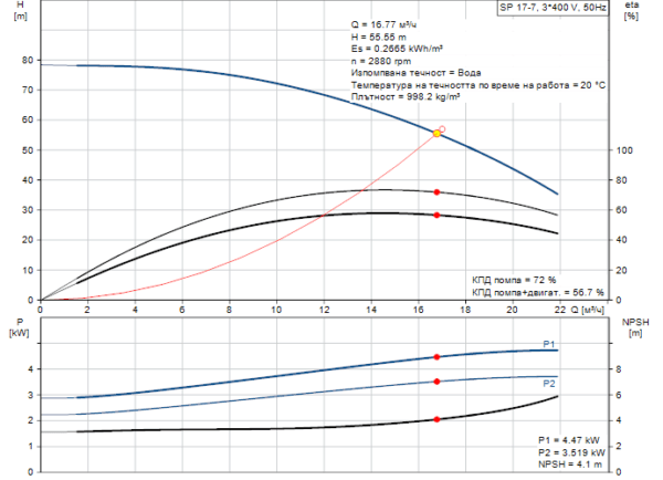 - Скорост на помпата на която са базирани данните: 2900 rpm