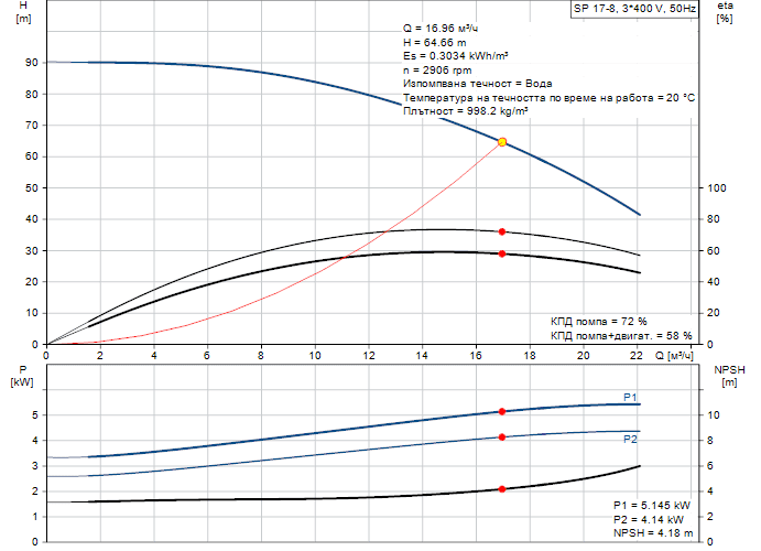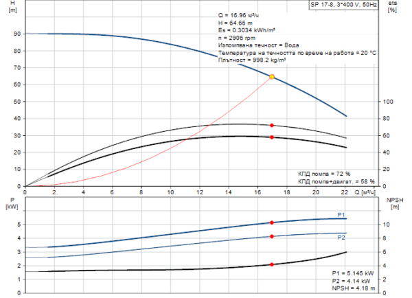- Скорост на помпата на която са базирани данните: 2900 rpm