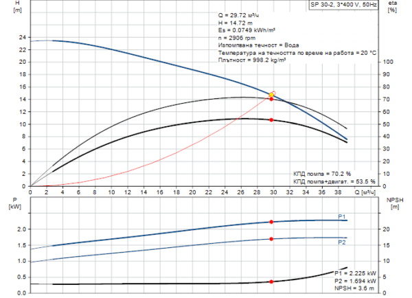 - Скорост на помпата на която са базирани данните: 2900 rpm