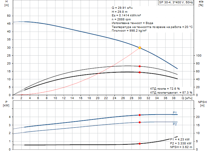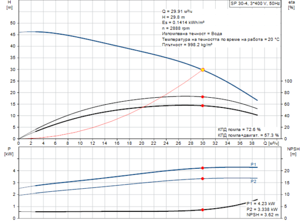 - Скорост на помпата на която са базирани данните: 2900 rpm