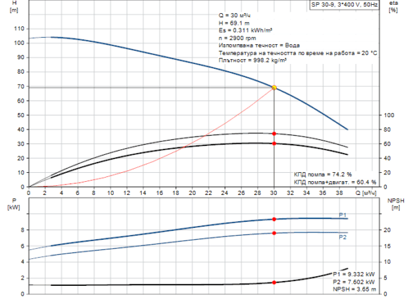 - Скорост на помпата на която са базирани данните: 2900 rpm