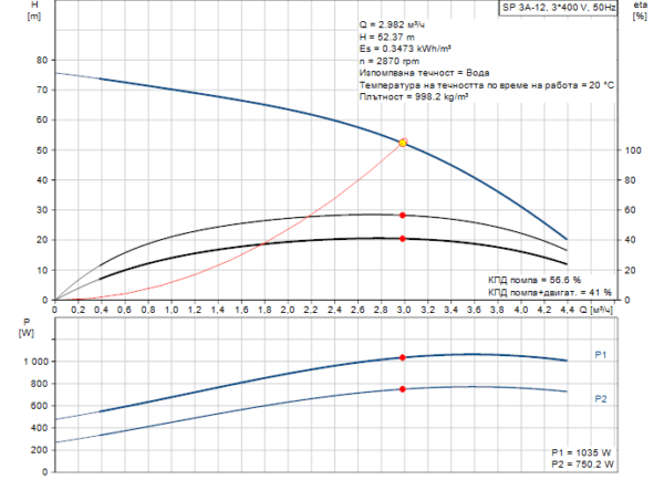 - Скорост на помпата на която са базирани данните: 2900 rpm