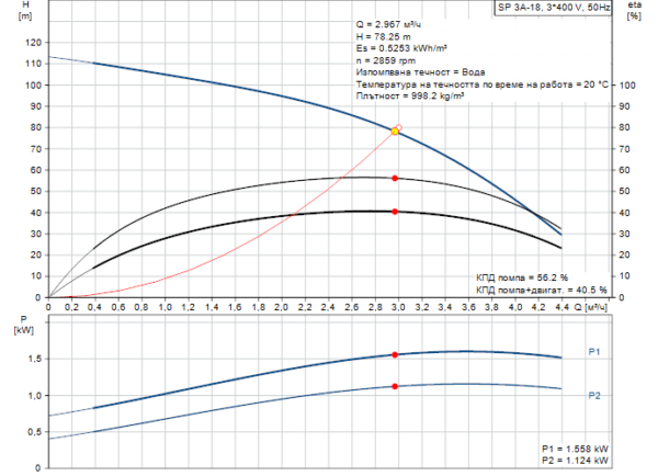 - Скорост на помпата на която са базирани данните: 2900 rpm
