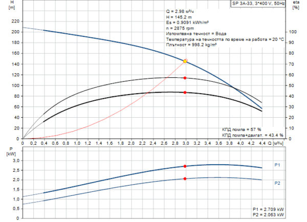 - Скорост на помпата на която са базирани данните: 2900 rpm