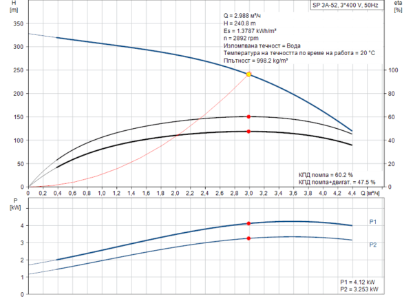- Скорост на помпата на която са базирани данните: 2900 rpm