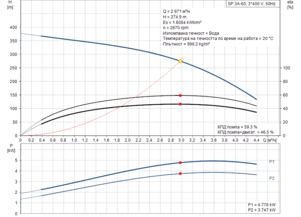 - Номинален напор: 280 m