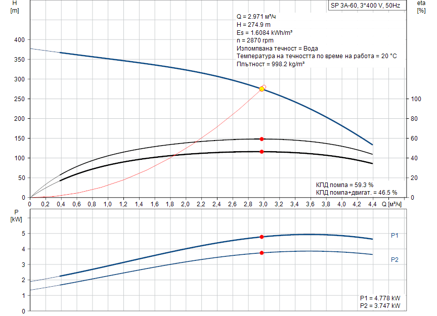 - Скорост на помпата на която са базирани данните: 2900 rpm