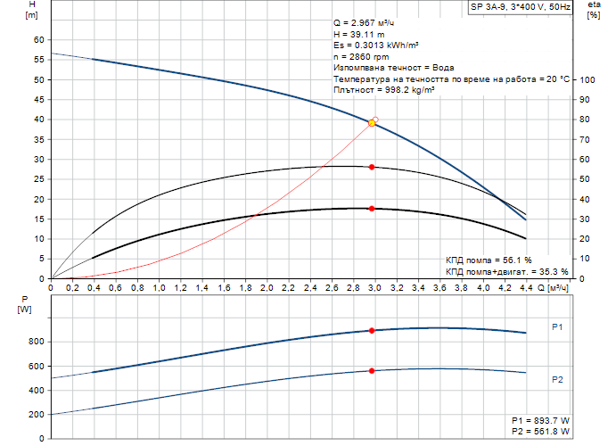 - Скорост на помпата на която са базирани данните: 2900 rpm
