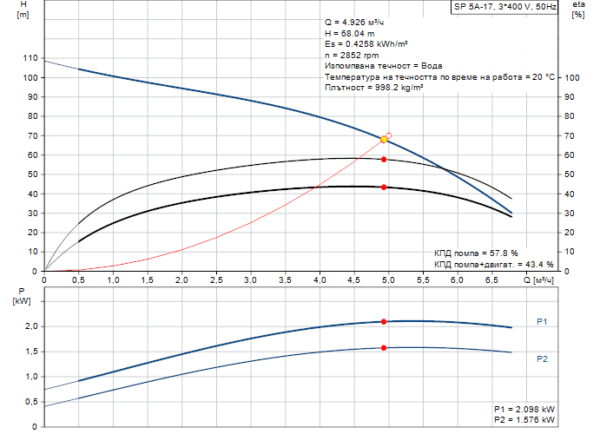 - Скорост на помпата на която са базирани данните: 2900 rpm