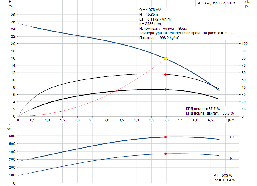 • Скорост на помпата на която са базирани данните: 2900 rpm