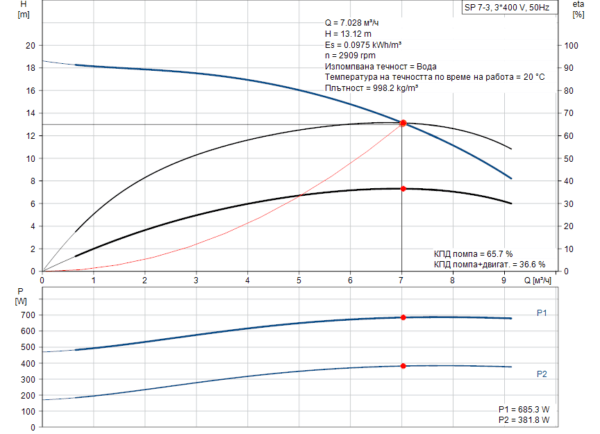 • Скорост на помпата на която са базирани данните: 2900 rpm