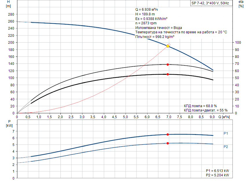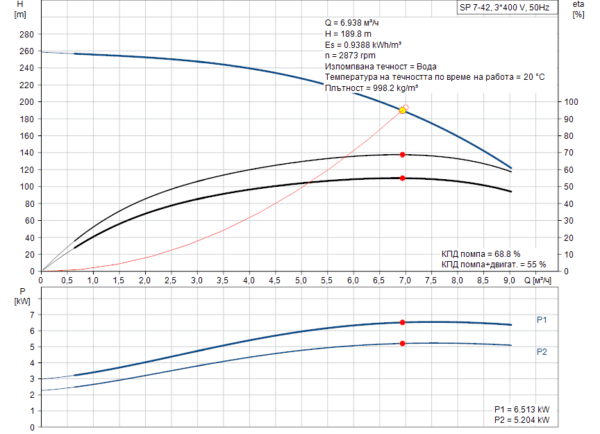 • Скорост на помпата на която са базирани данните: 2900 rpm
