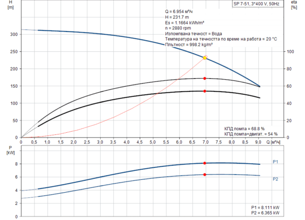 • Скорост на помпата на която са базирани данните: 2900 rpm