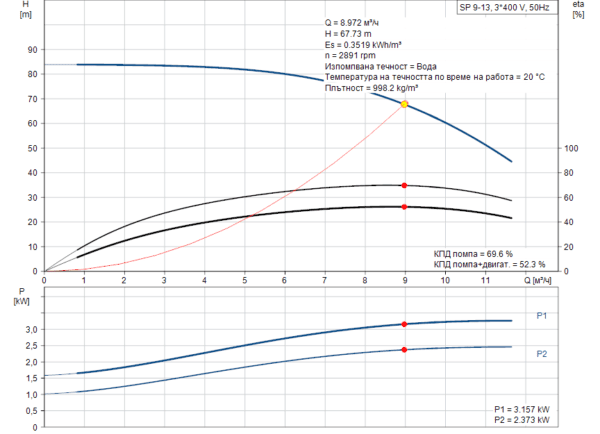 - Скорост на помпата на която са базирани данните: 2900 rpm