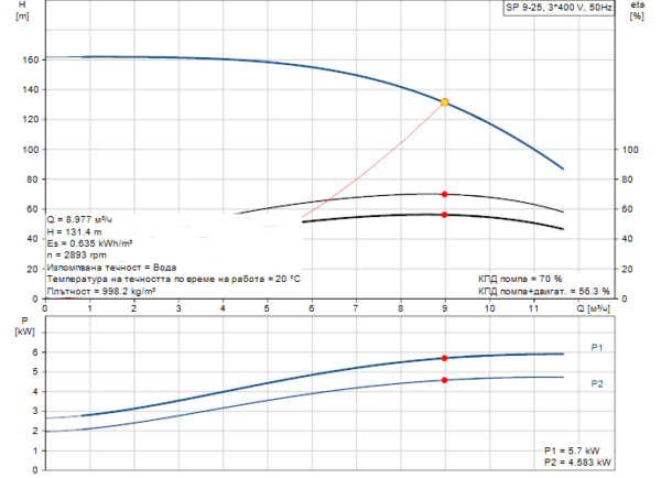 - Скорост на помпата на която са базирани данните: 2900 rpm