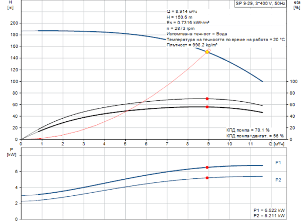 - Скорост на помпата на която са базирани данните: 2900 rpm