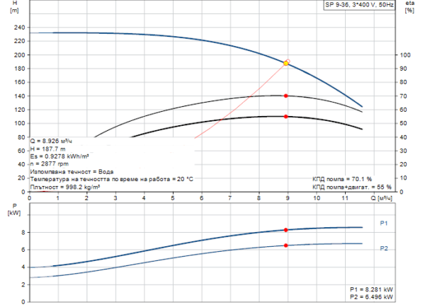 - Номинален напор: 187.7 m