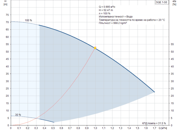 Grundfos SQE 1-50 е 3 цолова сондажна хидрофорна система, предназначена за битово водоснабдяване, пренос на течности до резервоари, напояване и други приложения.