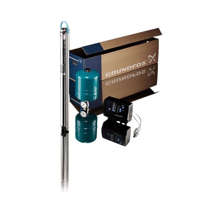 Комплект за управление: Включва помпа с променливи обороти, контролер с клавиатура за управление CU301 и възможност за заключване на бутоните, сферчен кран, манометър, мембранен съд 8 литра и кабел с дължина 80 m, подходящ за потапяне в питейна вода.