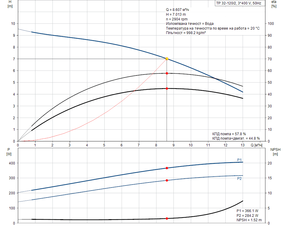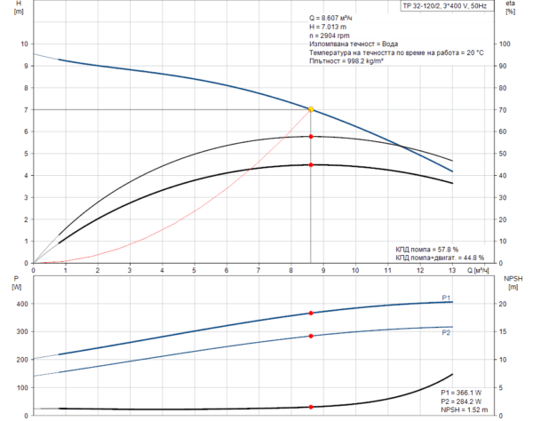 - Скорост на помпата, на която се базират данните за помпата: 2890 rpm