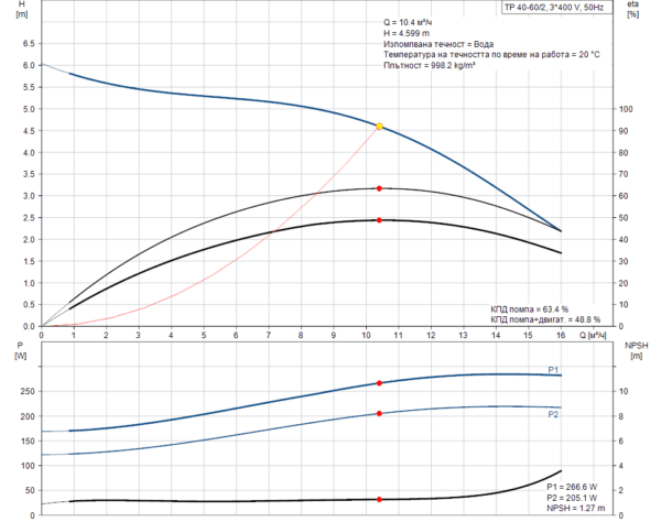 • Скорост на помпата, на която се базират данните за помпата: 2770 rpm