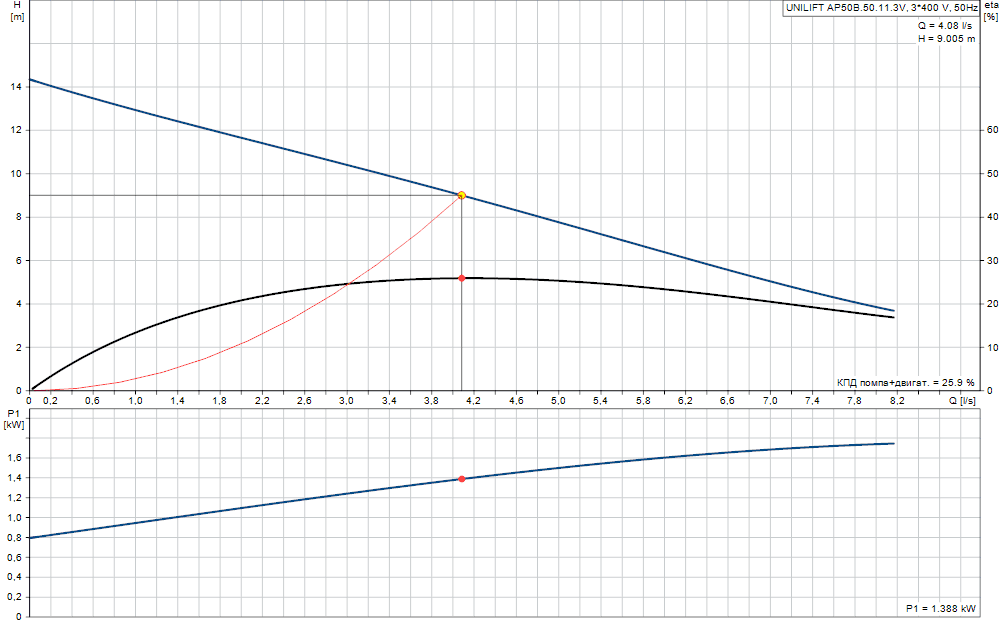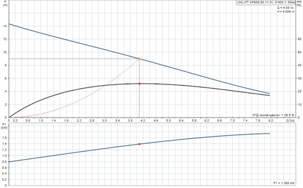 Работното колело е тип VORTEX със свободен подпочвена, дренажна и отпадна вода