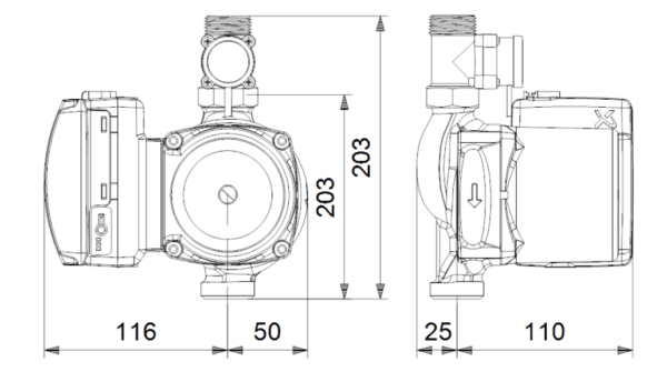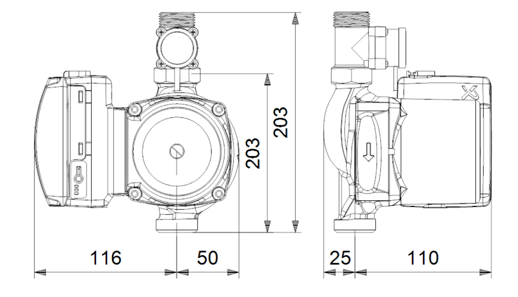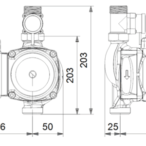 • Разстояние между входния и изходния фланец: 203 mm