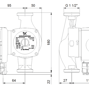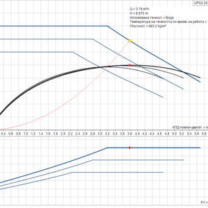 Grundfos UPS2 25-80 180 – високоефективна циркулационна помпа с автоматично регулиране на оборотите, предназначена за отоплителни системи. Осигурява номинален дебит 3.79 m³/h и номинален напор 6.88 m, с максимален напор до 8 m.