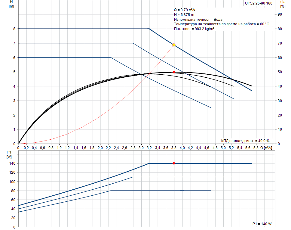 - Максимален напор: 8 m (80 dm)