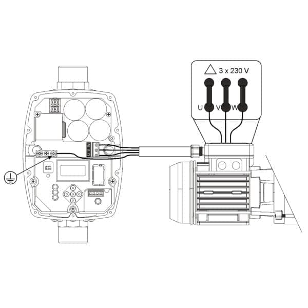 • Захранване на двигателя: монофазно 230 V или трифазно 3×230 V