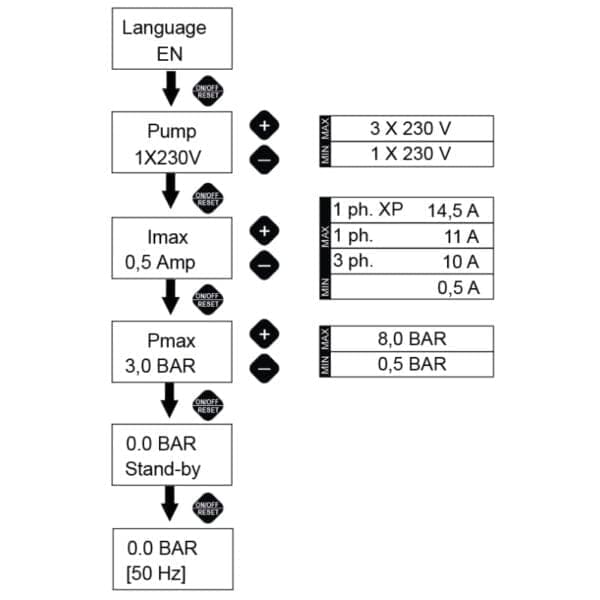 • Обхват на стартово налягане: 1 – 6.7 bar