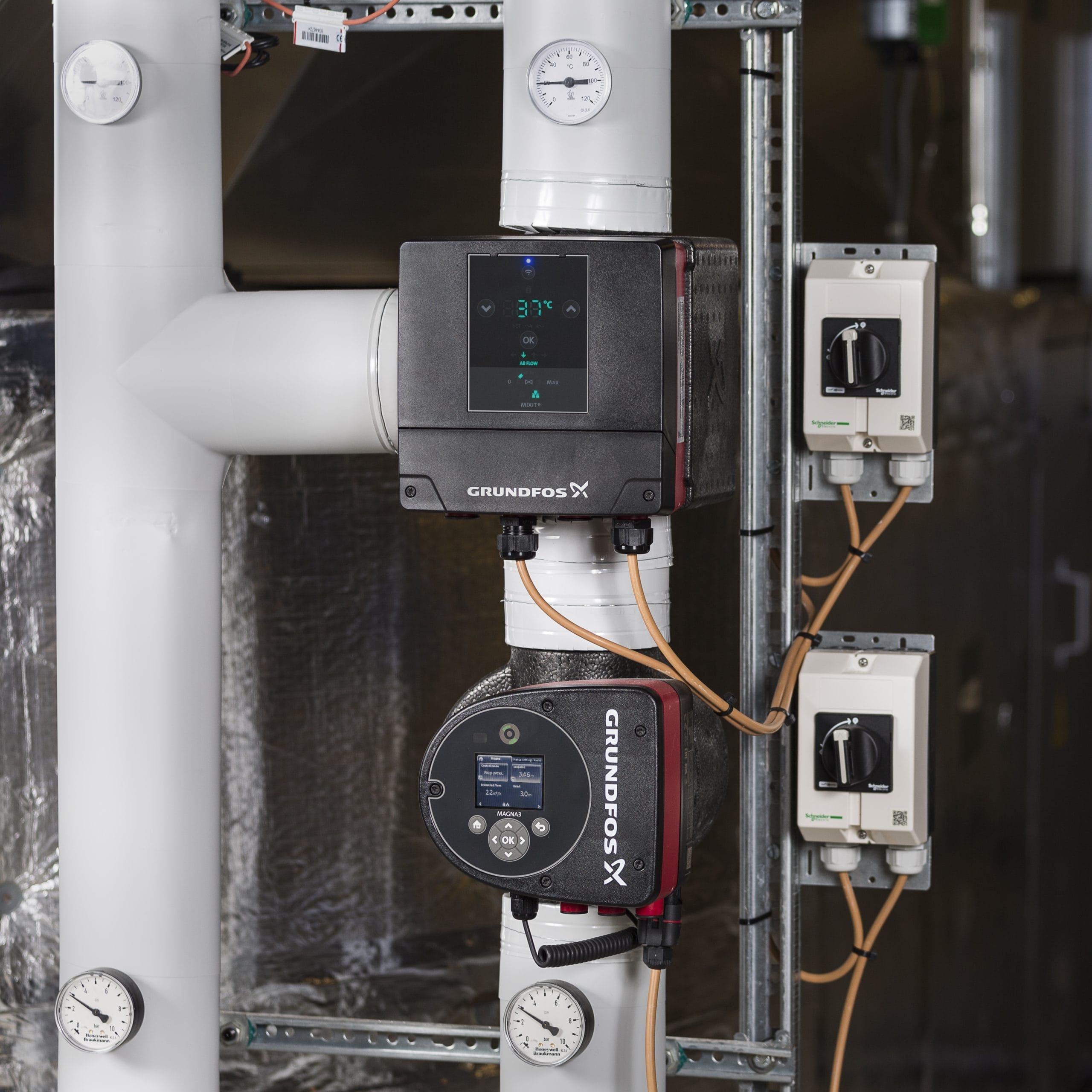 Grundfos MIXIT е предварително сглобен и напълно окомплектован, смесителен кръг с интегрирани функции за управление, предназначен за системи за отопление и охлаждане. MIXIT е подходящ основно за инсталации с три-пътни вентили в големи сгради, като например училища, без нужда от наблюдение и балансиране. С помоща на MIXIT се изгражда напълно окомплектован смесителен кръг само с два компонента: вентил MIXIT и най-добрата в класа циркулационна помпа Grundfos MAGNA3.