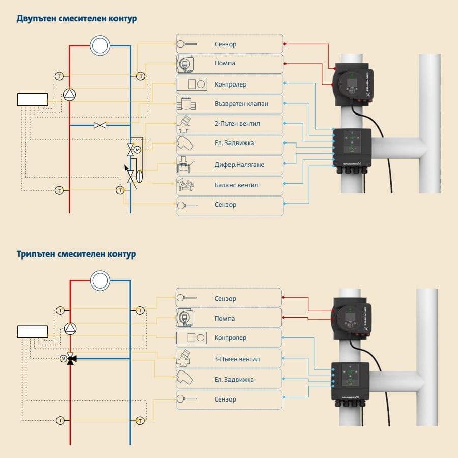 Смарт смесителен кръг с интегрирани функции за управление за BMS Grundfos MIXIT 25-6.3 L NRV