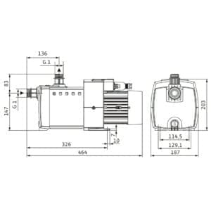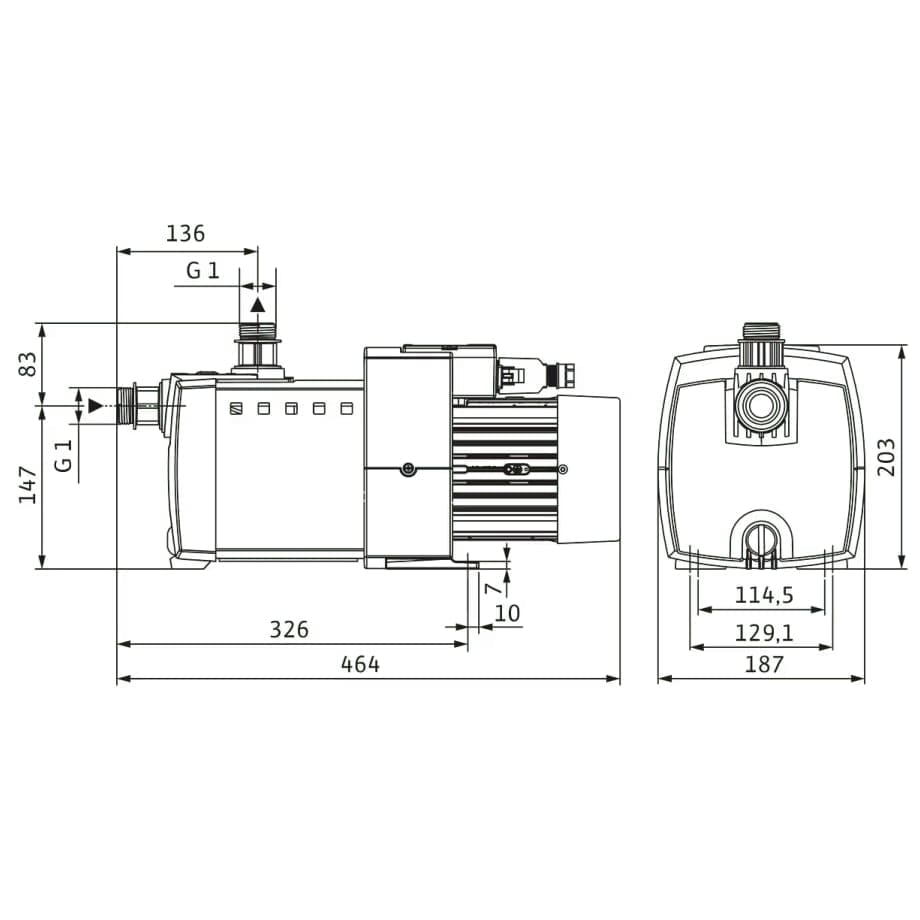Wilo HiMulti 3 3-45 P е многостъпална хоризонтална центробежна помпа със сух ротор и самозасмукваща конструкция,
