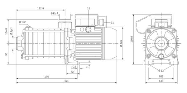 Към смукателната страна тръбно присъединяване: Rp 1, PN 10