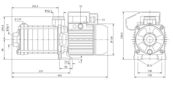От страна на нагнетателя тръбно присъединяване: Rp 1, PN 10
