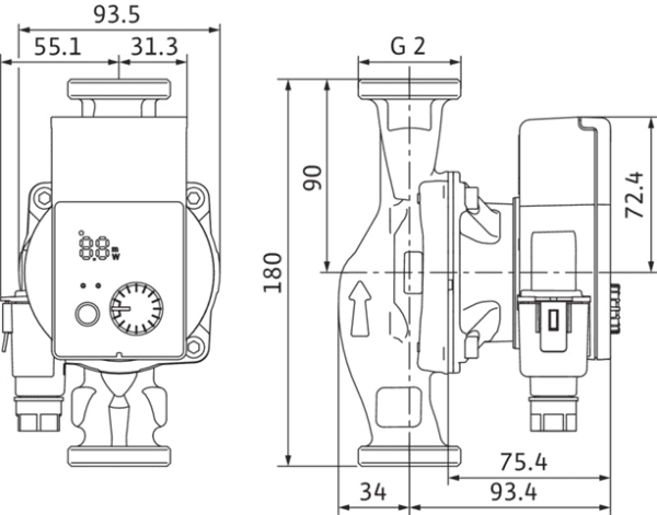 Високоефективна, електронно регулируема циркулационна помпа с мокър ротор, EC мотор устойчив на блокиране и безстепенно регулиране на мощността. Подходяща за всички отоплителни и климатични системи. Предлага възможност за избор на режим според приложението – радиатори или подово отопление.