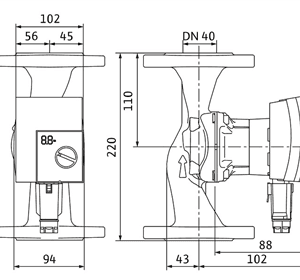 - От страна на нагнетателя тръбно присъединяване: DN 40, PN 6